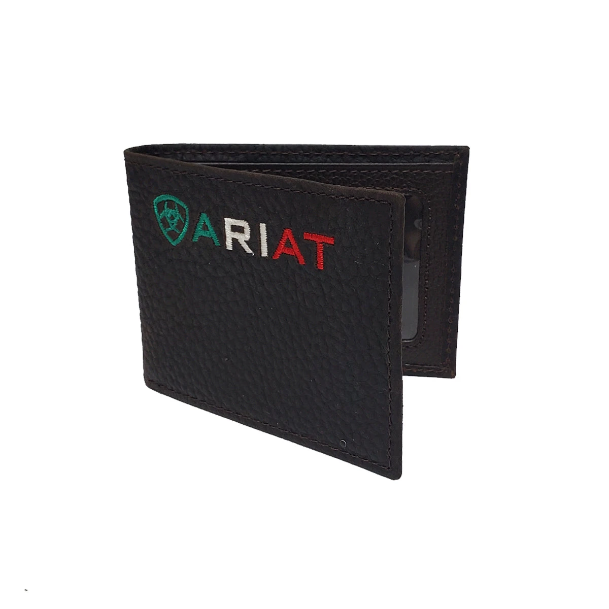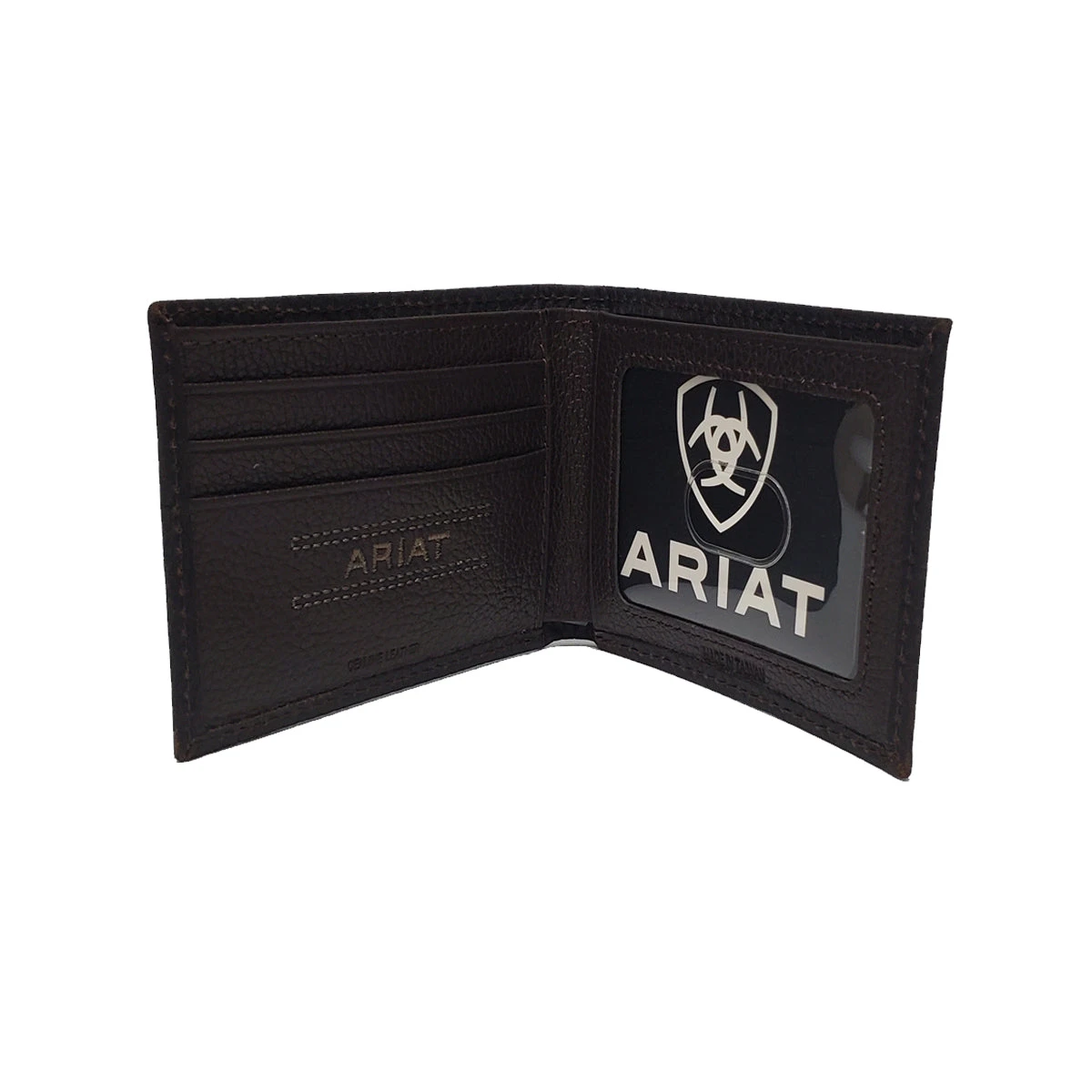 Stay both organized and in style with this Ariat bifold wallet by M&F Western Products. Genuine leather with Ariat shield logo. Features multiple compartments for your credit cards, cash and ID.