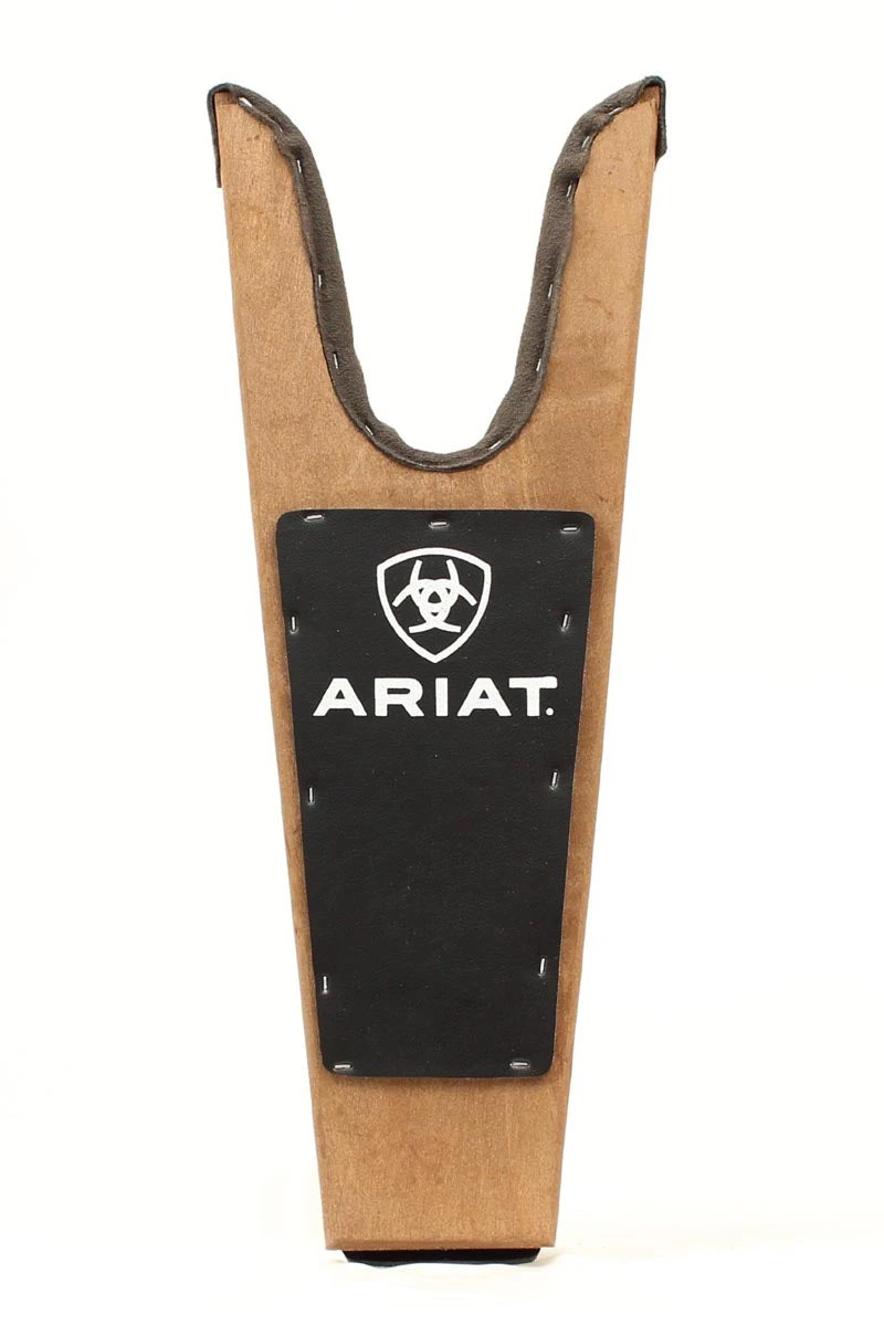 Take your boots of with ease with this handy small boot jack. Stained wood with the Ariat logo on a leather foot bed. Padded edge helps protect your boots from scuffing while taking off boots..