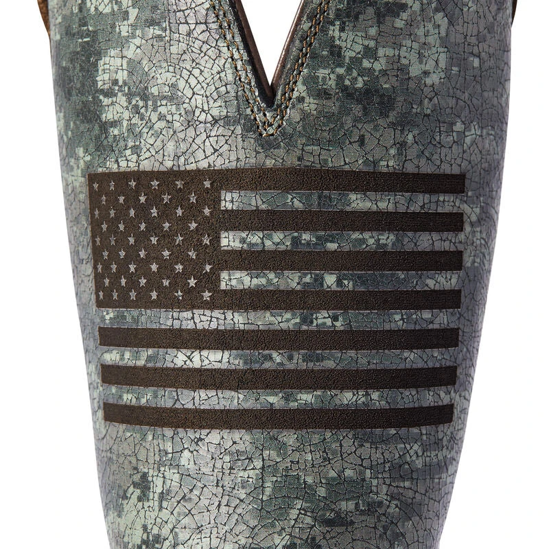 This lightweight pair packs a punch, thanks to the cool, camo-print shaft and lasered-on American flag. The toned-down colors keep it versatile—the kind of boot you can feed in or run around town in.