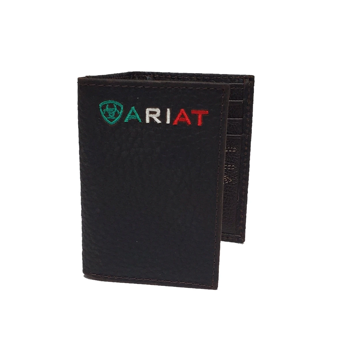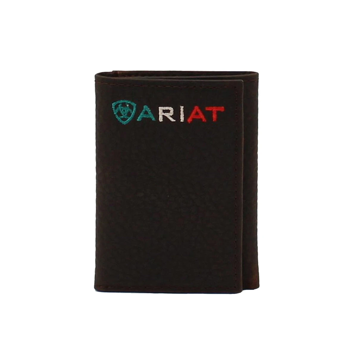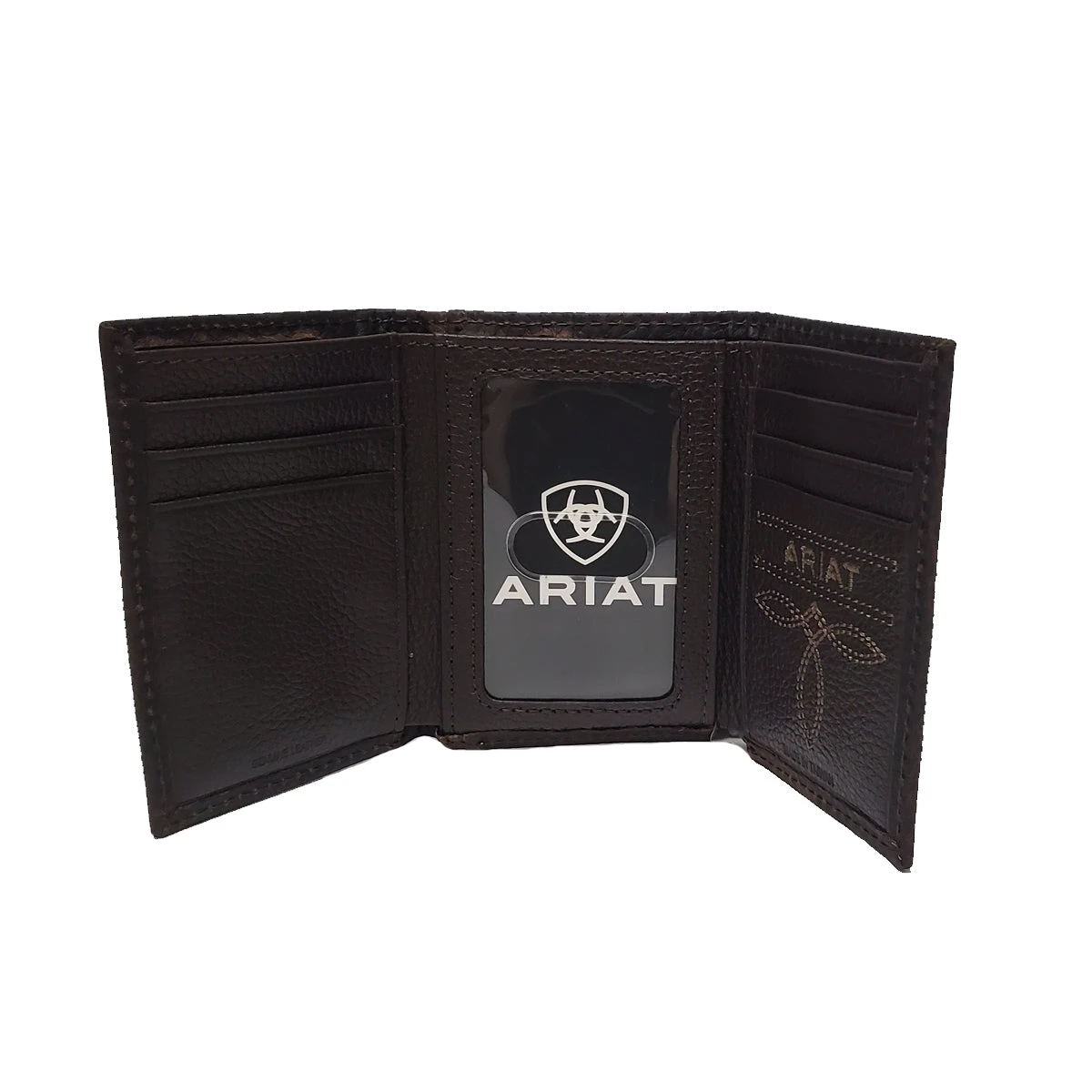Stay both organized and in style with this Ariat bifold wallet by M&F Western Products. Genuine leather with Ariat shield logo. Features multiple compartments for your credit cards, cash and ID.
