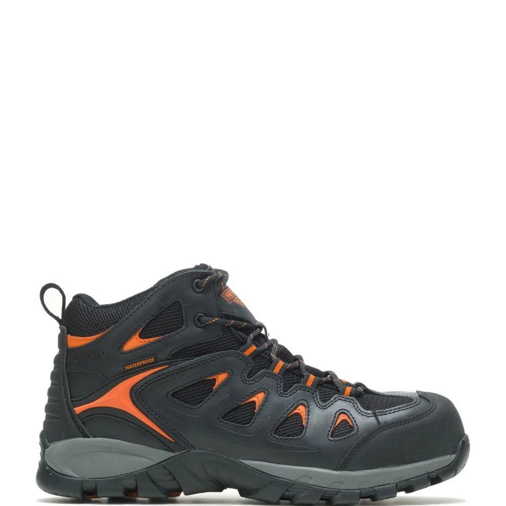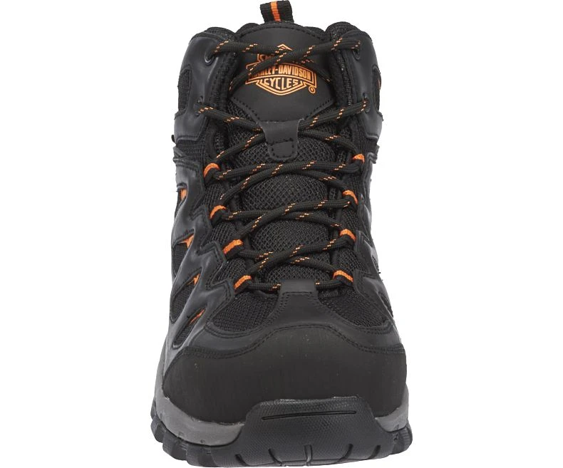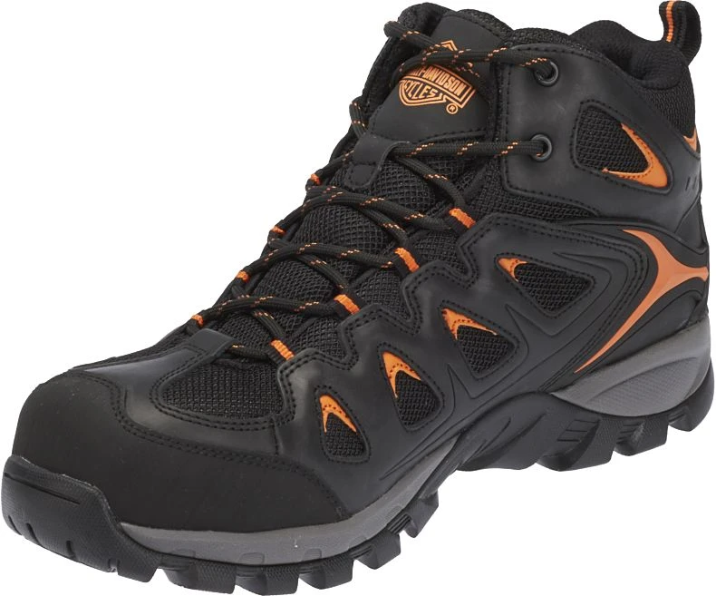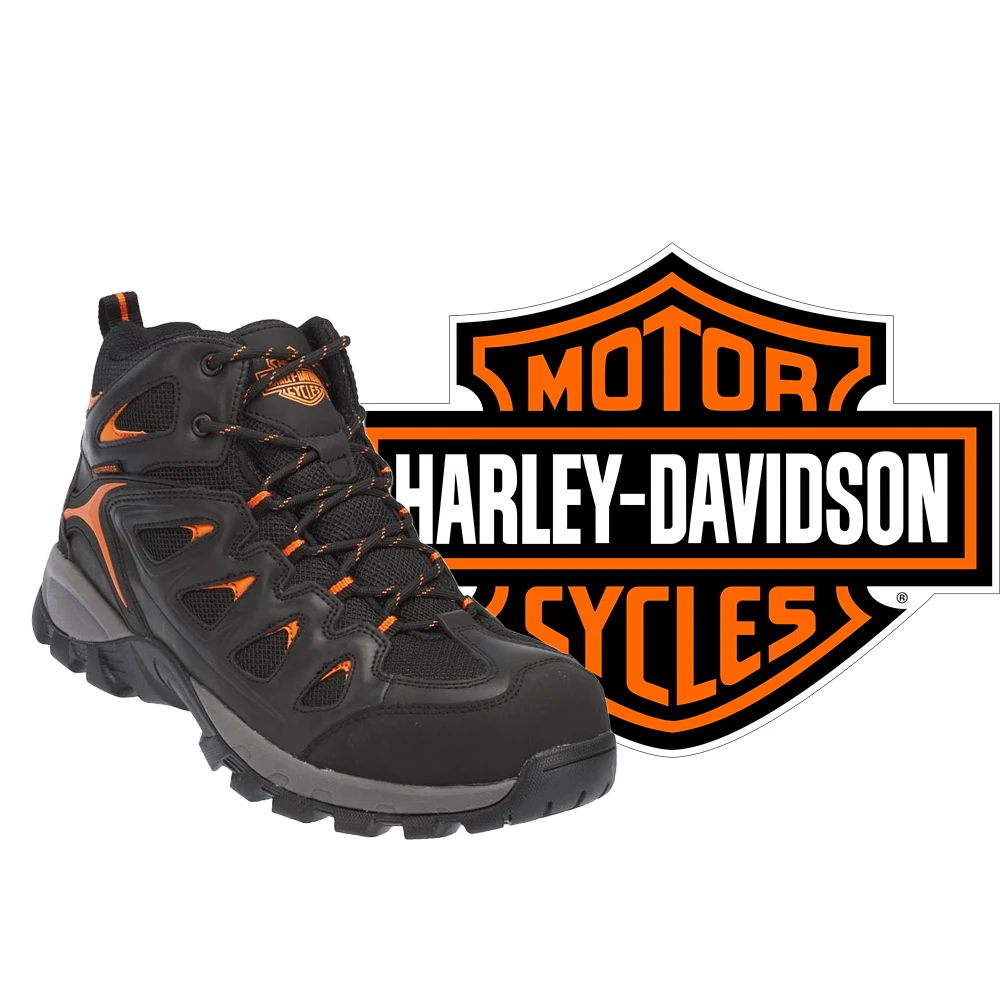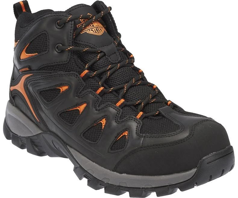 An athletic style safety shoe for the working man with hits of iconic H-D orange to inspire your inner rebel, the Woodridge features an ASTM compliant non-metallic composite toe that non-conductive and resistant to temperature change. Also available in a soft toe version. Disclaimer: It is recommended that Safety Toe styles are not worn when riding a motorcycle.