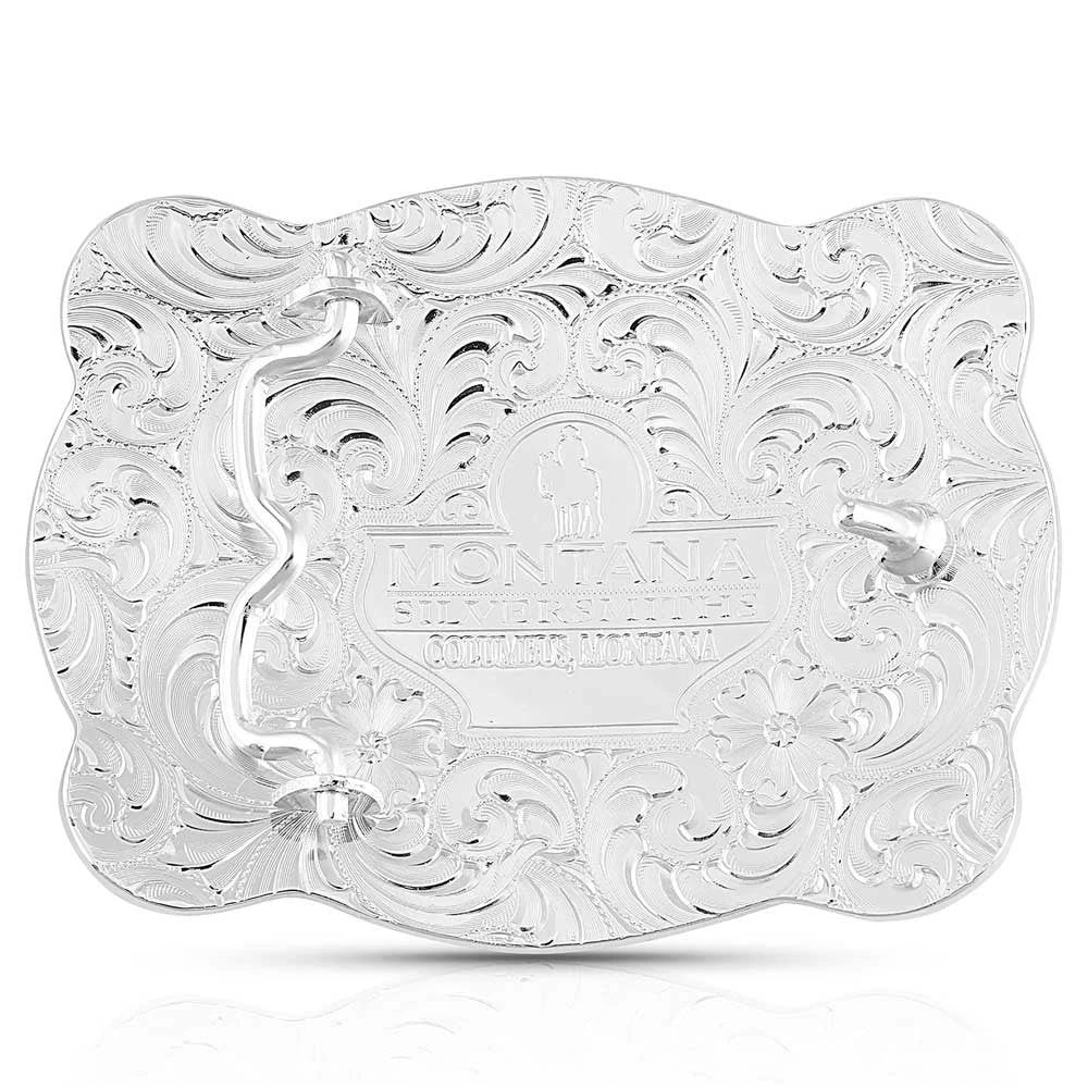 Our Simple Scalloped Silver Golden Faith Buckle is a timeless piece. It is a western classic buckle! It is silver-finished, scalloped in shape with filigree twists and turns. In the center, a gold-finished cross is placed. It is trimmed with hand-painted black that holds silver studs. This buckle is shiny yet subtle, classic and traditional. Standard 1.5 inch belt swivel.