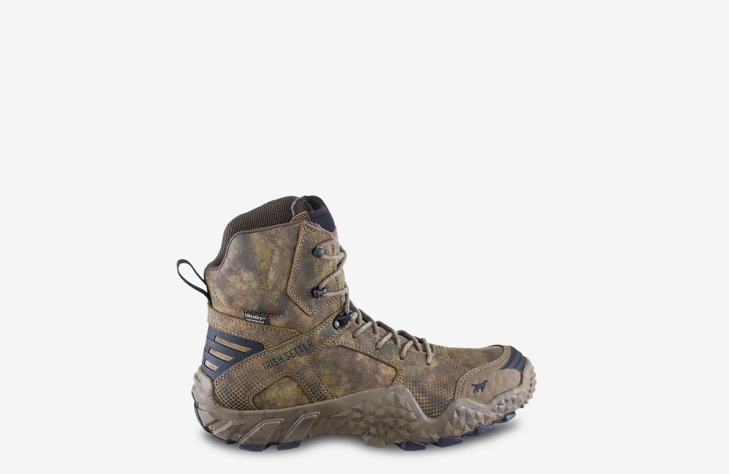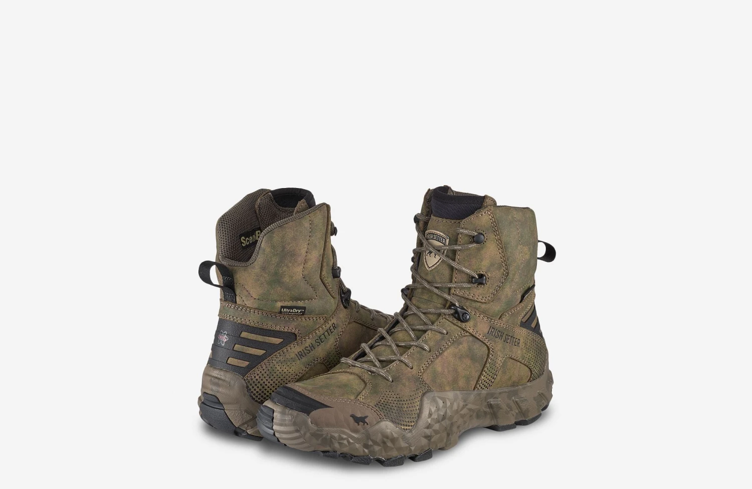 The VaprTrek 8-inch waterproof leather camo hunting boot is built to move fast when it’s time to get going and keep you comfortable when you need to stay hidden. It is made from full-grain Earth Field Camo leather which is designed to work with a variety of camo patterns removing the hassle of matching camo patterns. It also incorporates abrasion-resistant ArmaTecâ„¢ XT material for enhanced durability. The UltraDryâ„¢ waterproofing system keeps your feet dry in wet weather. ScentBanâ„¢ technology kills bacteria to help eliminate odor. A memory foam insole provides instant underfoot comfort. High-rebound ENERG material helps fight fatigue with every step. CuShinâ„¢ comfort tongue technology helps minimize pressure from the boot tongue on your shin.Â