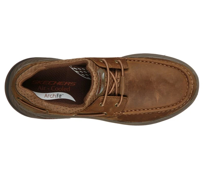 Your feet will thank you for the supportive comfort and smart style of the SKECHERS Arch Fit Motley – Hosco shoe. Smooth oiled leather and soft mesh fabric upper in a slip on stretch laced casual comfort moc toe boat style oxford with Arch Fit removable supportive cushioning insole system and cushioned midsole.