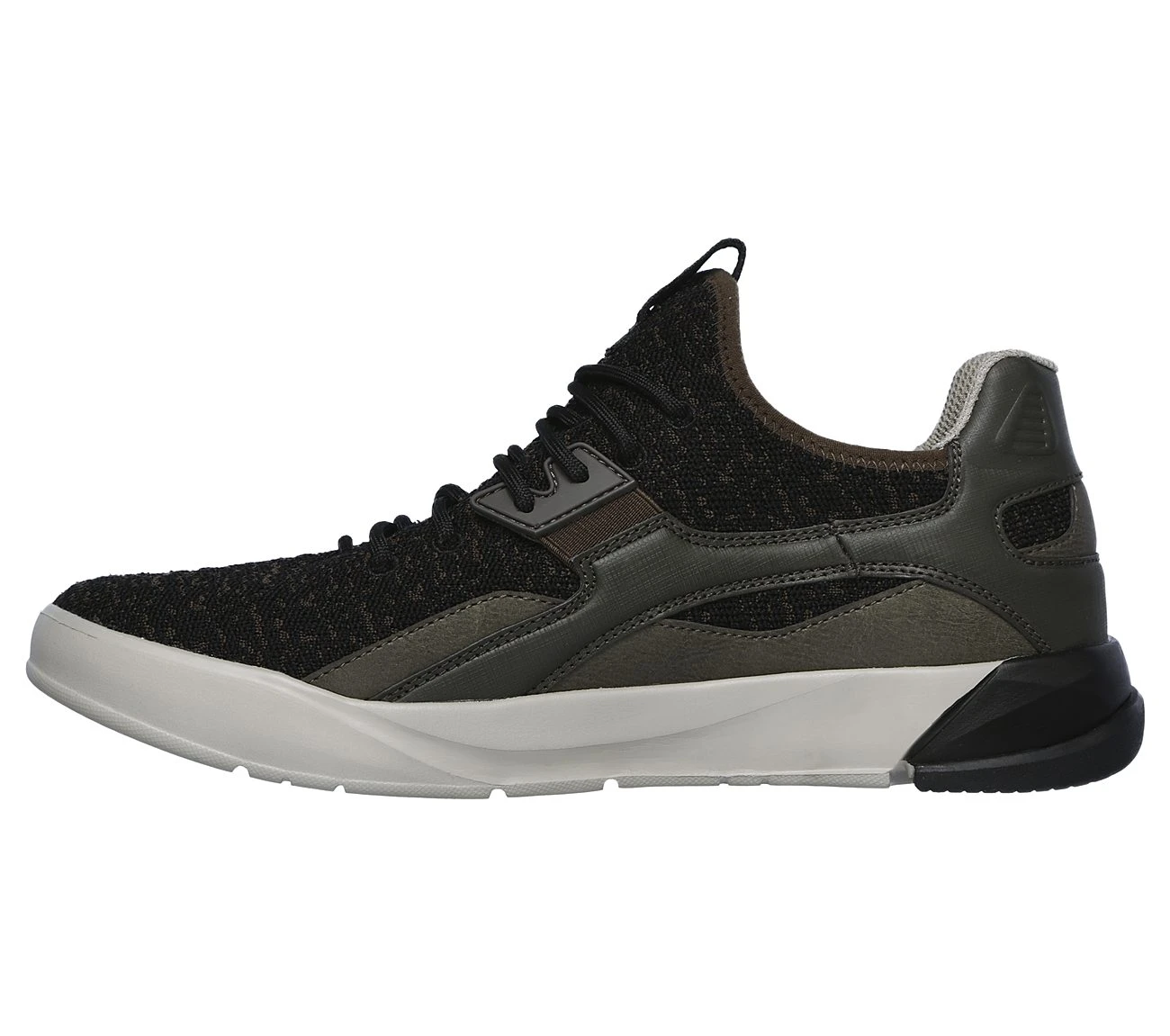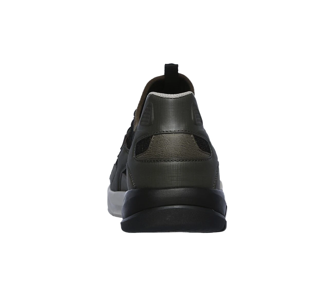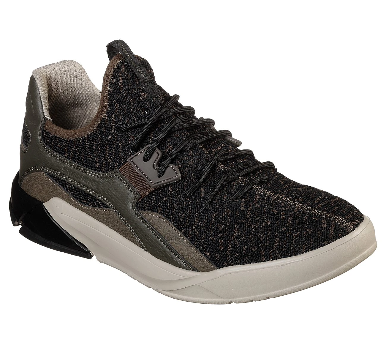 Take your streetwise casual style with extra space and comfort in the SKECHERS Relaxed Fit: Belson – Aseno shoe. Lightweight knit mesh fabric and synthetic upper in a slip on laced-front sporty casual comfort sneaker oxford with stitching and overlay accents. Air Cooled Memory Foam insole, flexible comfort midsole.