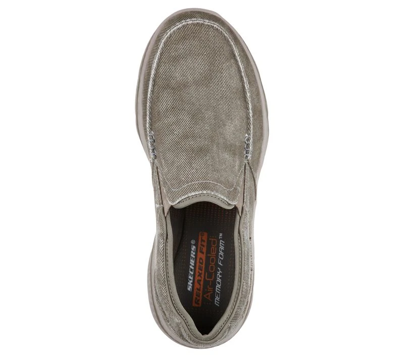 Canvas means comfort and laid-back cool style in the SKECHERS Relaxed Fit®: Creston – Moseco shoe. Soft woven canvas fabric upper in a slip on casual comfort loafer moc with stitching and overlay accents. Air-Cooled Memory Foam insole.