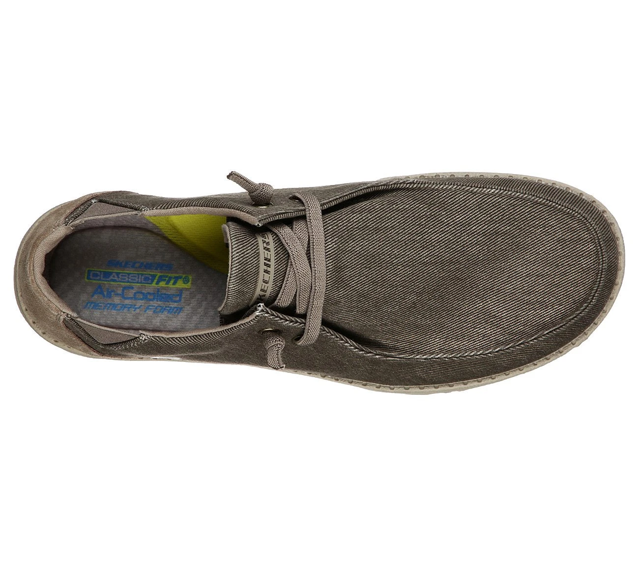 Let nothing come between you and full loafing mode with the SKECHERS Melson – Raymon shoe. Soft woven canvas fabric and fabric upper in a slip on stretch laced casual beach moc with stitching and overlay accents. Air Cooled Memory Foam insole.
