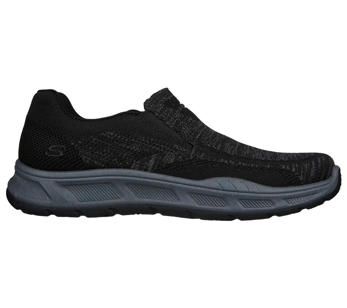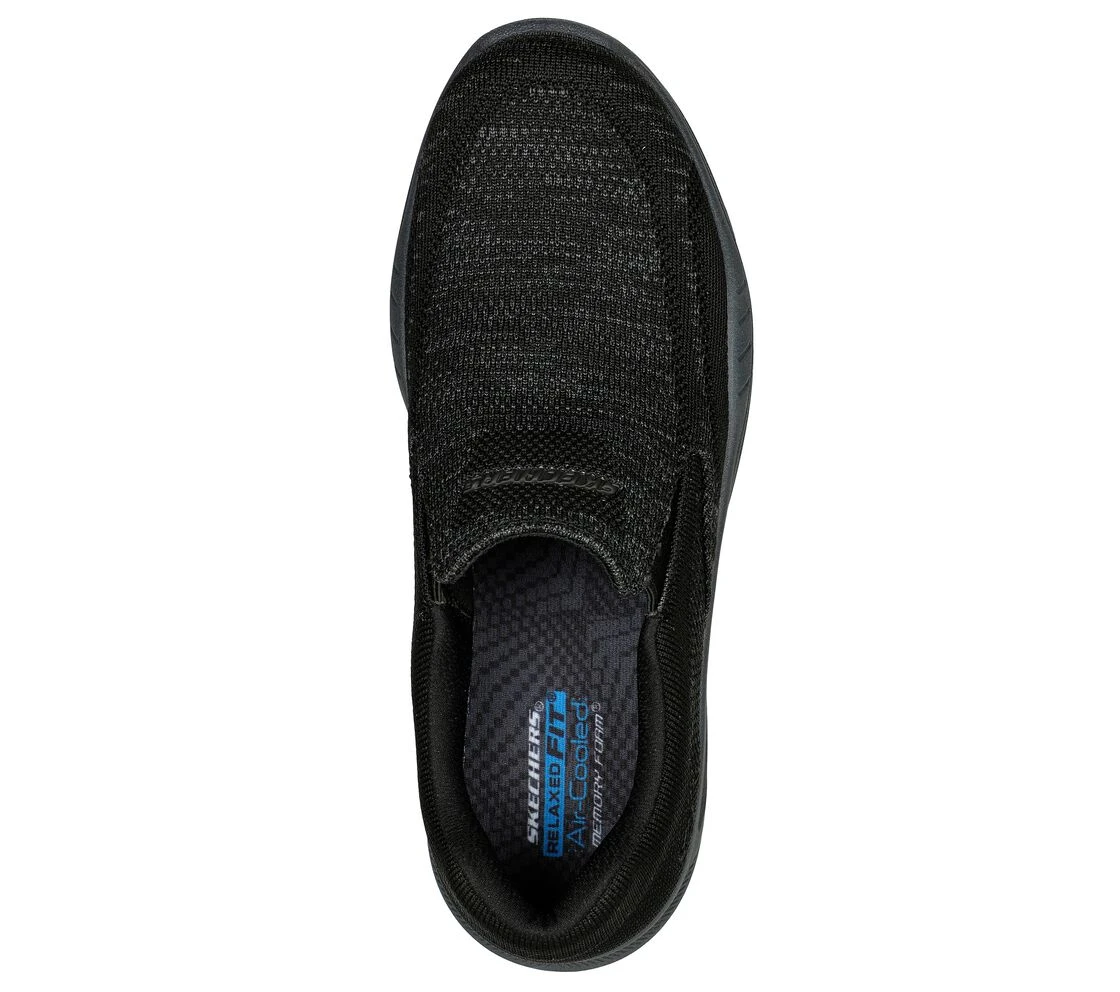 Keep it simple and comfortable wearing Skechers Relaxed Fit®: Cohagen – Knit Walk. This casual laceless fit design features a twin gore panels in a knit upper with a Skechers Air-Cooled Memory Foam® cushioned insole.
