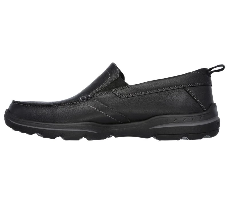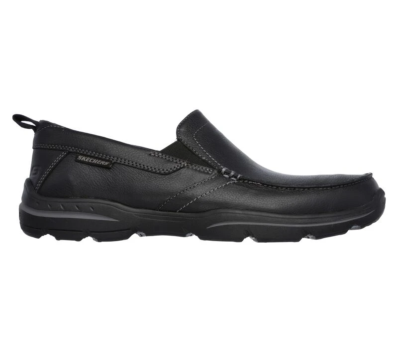 Turn loafing into a fine art form wearing the SKECHERS Relaxed Fit®: Harper – Forde shoe. Smooth full grain leather upper in a slip on casual comfort loafer with stitching and overlay accents. Air-Cooled Memory Foam insole.