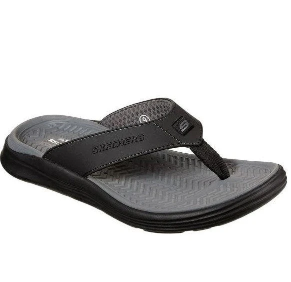 Brighten up your warm weather styles with contoured comfort wearing the SKECHERS Relaxed Fit®: Sargo – Sunview sandal. Smooth synthetic upper in a flip flop casual comfort thong sandal with stitching accents and Memory Foam 360 cushion design.