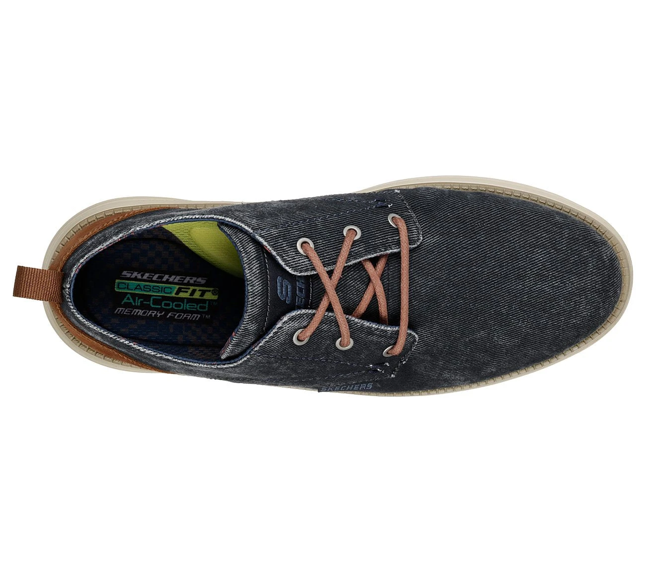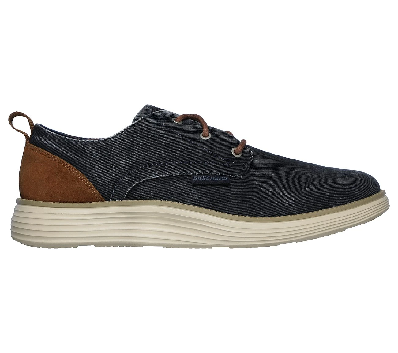 Always improve on greatness in versatile casual style with the SKECHERS Status 2.0 – Pexton shoe. Vintage Washed soft canvas fabric and soft suede upper in a lace up casual comfort sneaker oxford with stitching accents. Air Cooled Memory Foam insole.