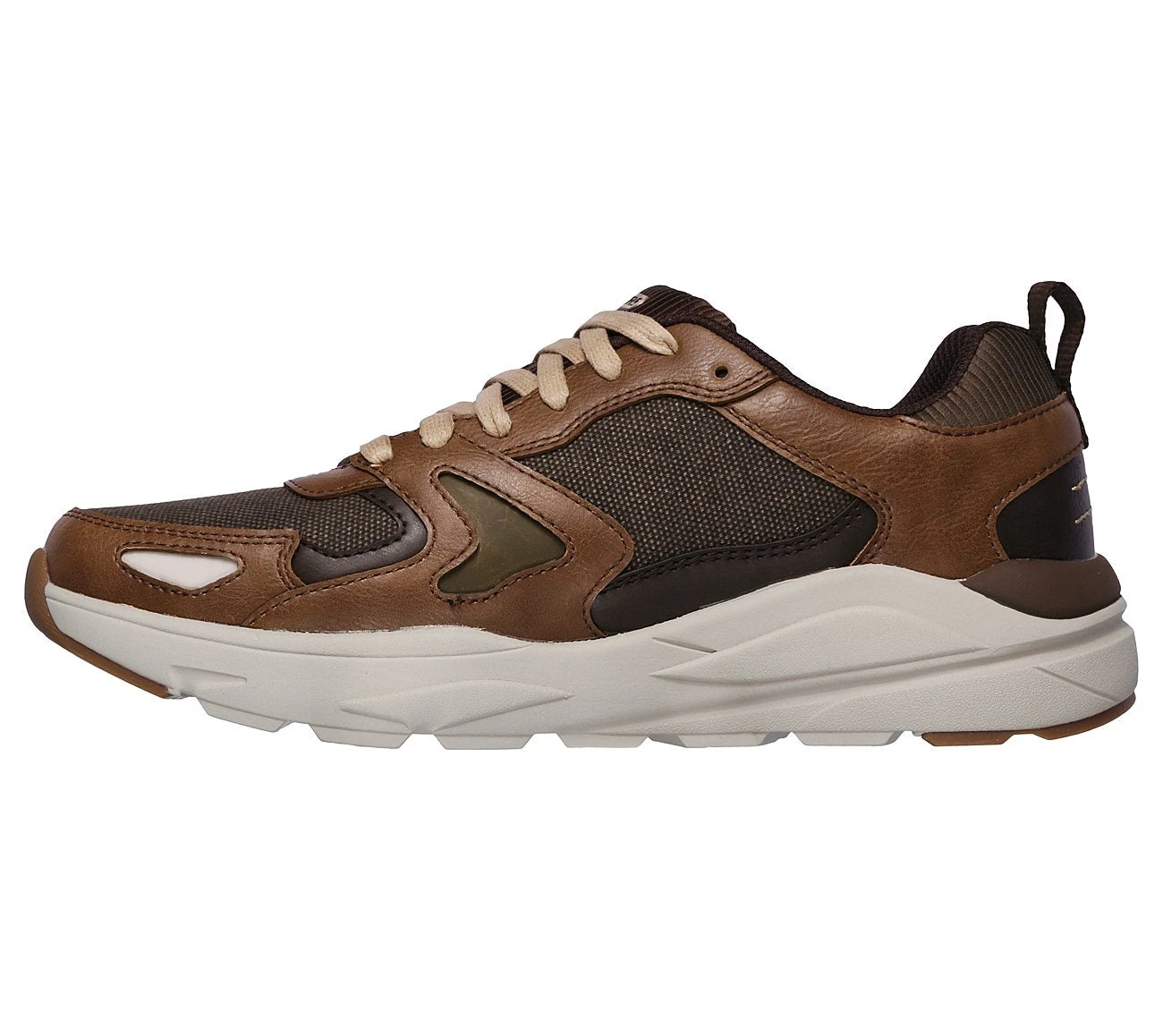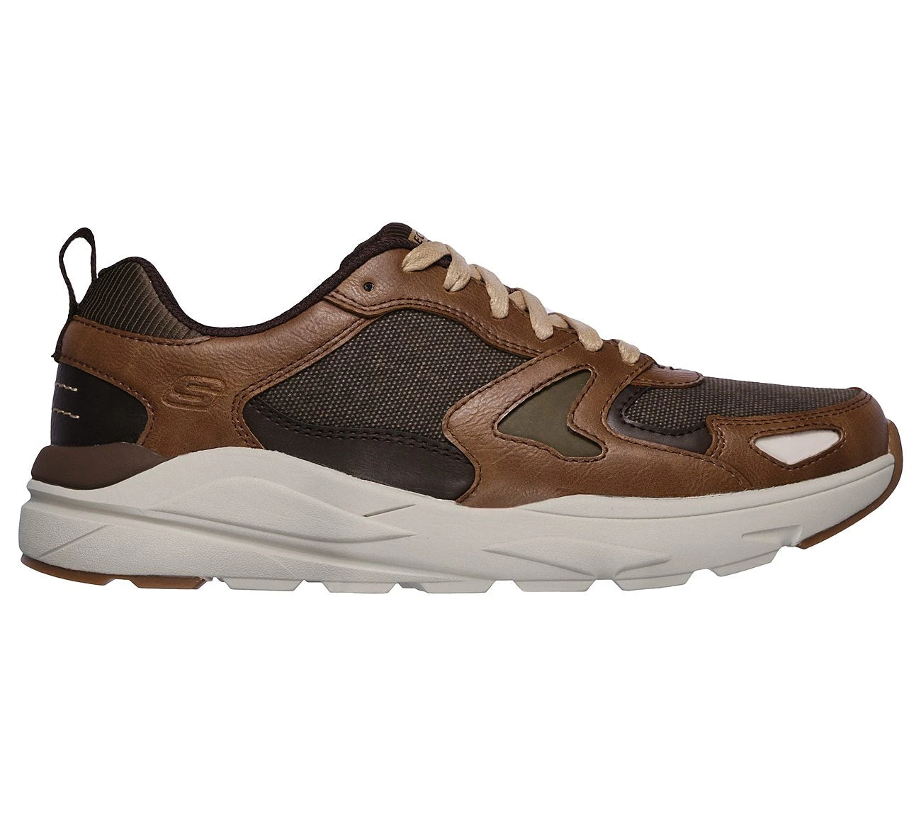 Find the sweet spot between sporty looks and easy-wearing casual comfort in the SKECHERS Relaxed Fit: Verrado – Brogen shoe. Smooth leather, synthetic and woven mesh or canvas fabric upper in a lace up sporty casual comfort sneaker oxford with stitching and overlay accents. Air Cooled Memory Foam insole.