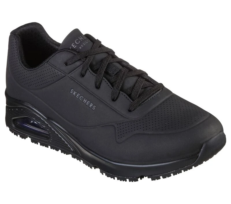 Comfort, style and safety combine easily in Skechers Work Relaxed Fit: Uno SR – Sutal. This lace-up work design features a smooth perforated synthetic upper with an Air-Cooled Memory Foam® insole and a visible Skech-Air® air-cushioned midsole.