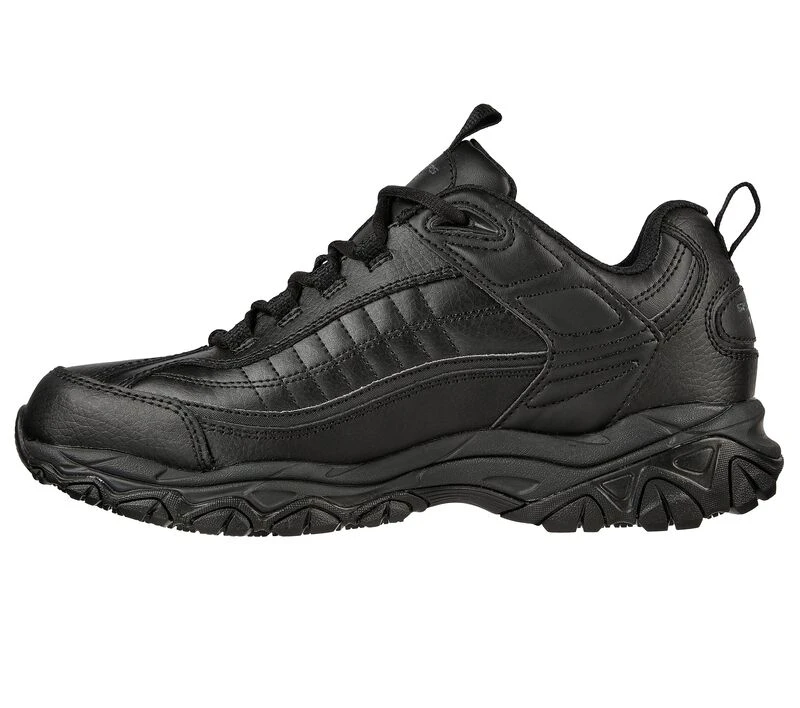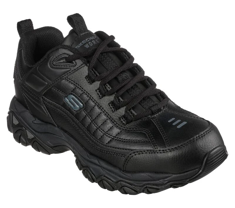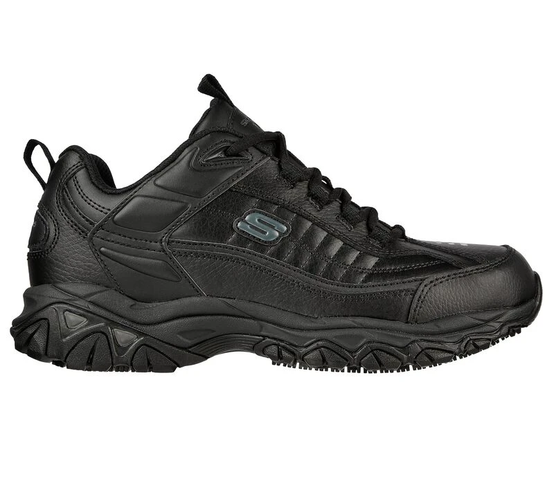Rely on the comfort and durability of Skechers Work: Soft Stride – Fambli SR. This slip-resistant features a lace-up smooth leather and synthetic upper with a Skechers Memory Foamâ„¢ cushioned comfort insole.