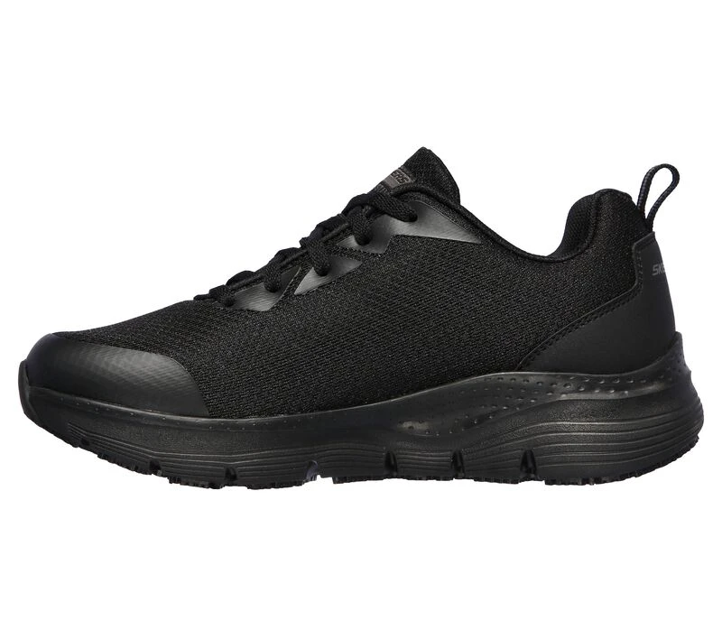 Get the support and comfort you need for a full shift with the SKECHERS Work: Arch Fit SR shoe. Durable woven mesh fabric and synthetic upper in a lace up sporty casual slip resistant work sneaker with Arch Fit removable supportive cushioning insole system and cushioned midsole.