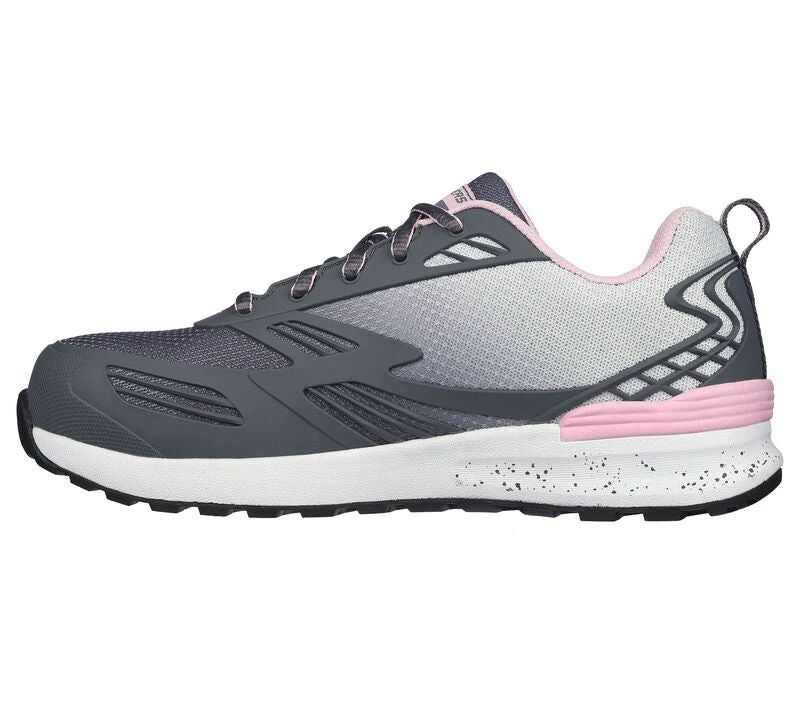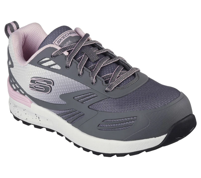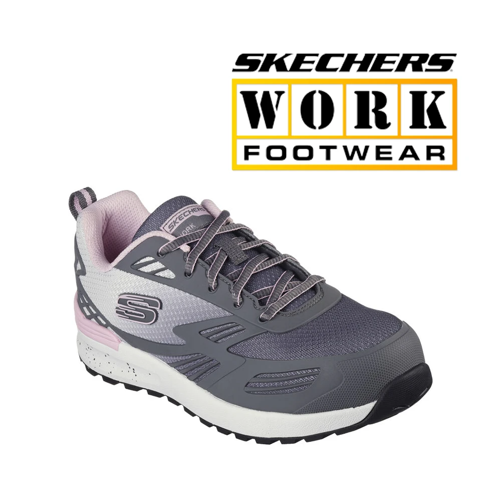 Stay protected and comfortable during your shift with Skechers Work™: Bulklin – Kaytin Comp Toe. Featuring a lace-up synthetic and mesh upper on a sporty composite safety toe work design with a cushioned Skechers Air-Cooled Memory Foam® insole.