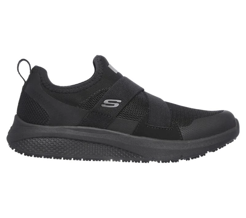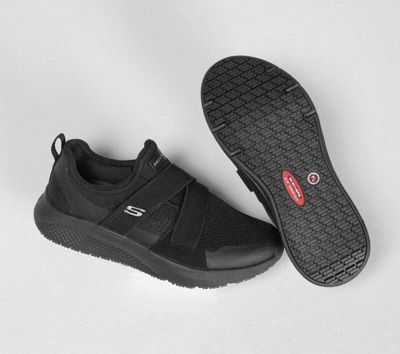 Your comfort and safety come naturally wearing the SKECHERS Work: Elloree SR shoe. Smooth woven mesh fabric and synthetic upper in a slip on sporty casual comfort work slip resistant sneaker with stitching accents and Memory Foam insole.