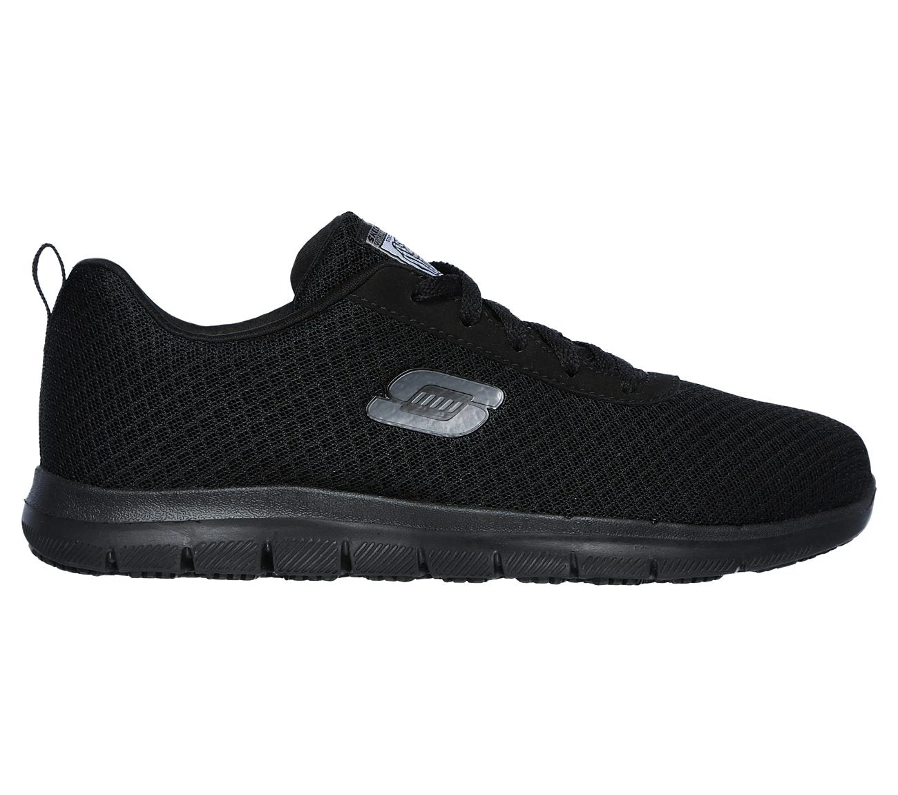 Sporty style meets surefooted comfort in the SKECHERS Work Relaxed Fit: Ghenter – Bronaugh SR shoe. Soft sporty mesh fabric and synthetic upper in a lace up sporty casual work slip resistant sneaker with stitching accents and Air Cooled Memory Foam insole.
