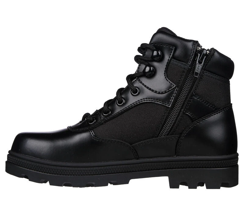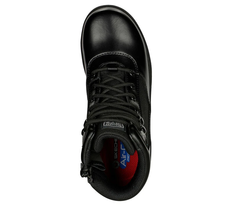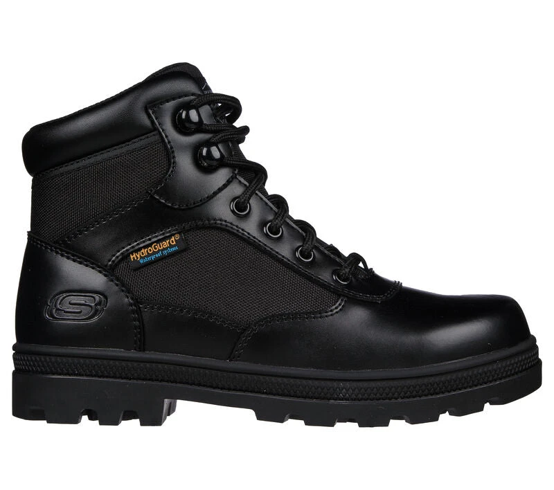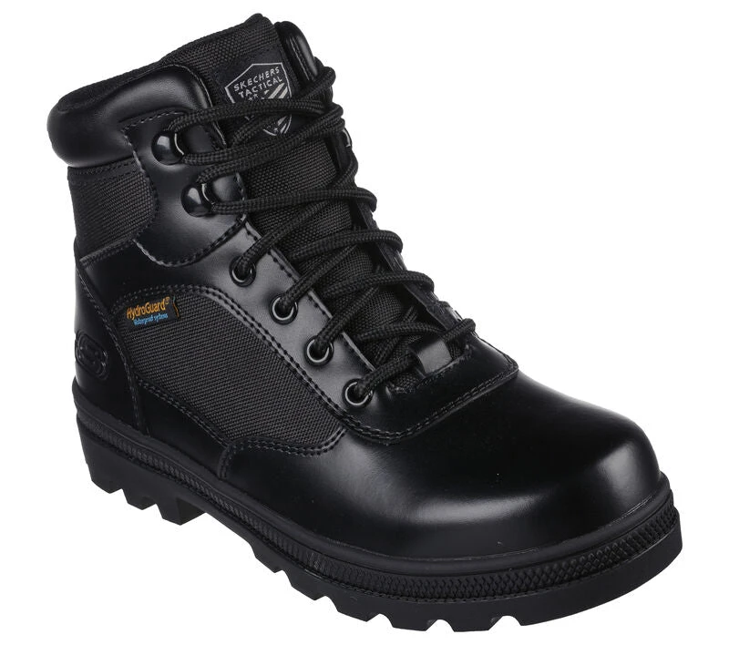 Dependable comfort and safety combine in Skechers Workâ„¢: Rotund – Briggit. This waterproof lace-up tactical boot features a leather, mesh and synthetic upper with a cushioned Skechers Air-Cooled Memory Foam® insole.