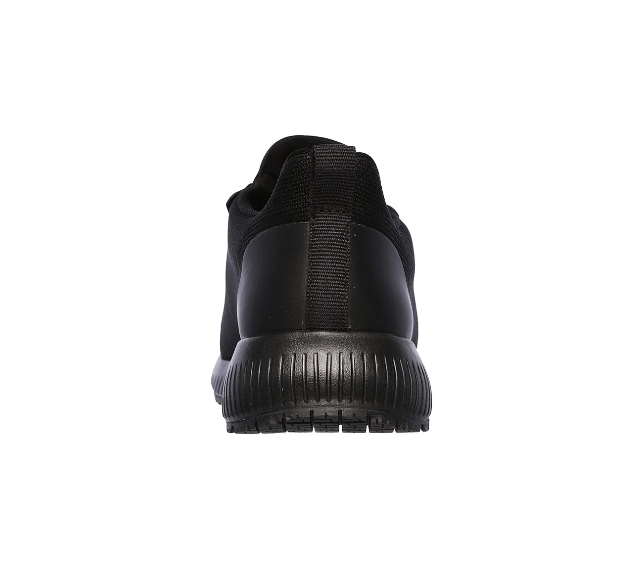 Comfort and protection that also looks great comes in the SKECHERS Work: Squad SR shoe. Soft sporty knit mesh fabric and synthetic upper in a slip on stretch laced sporty casual work slip resistant sneaker with stitching accents and Memory Foam insole.