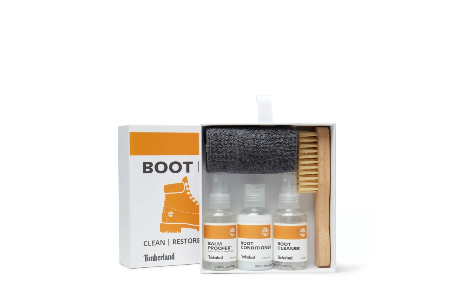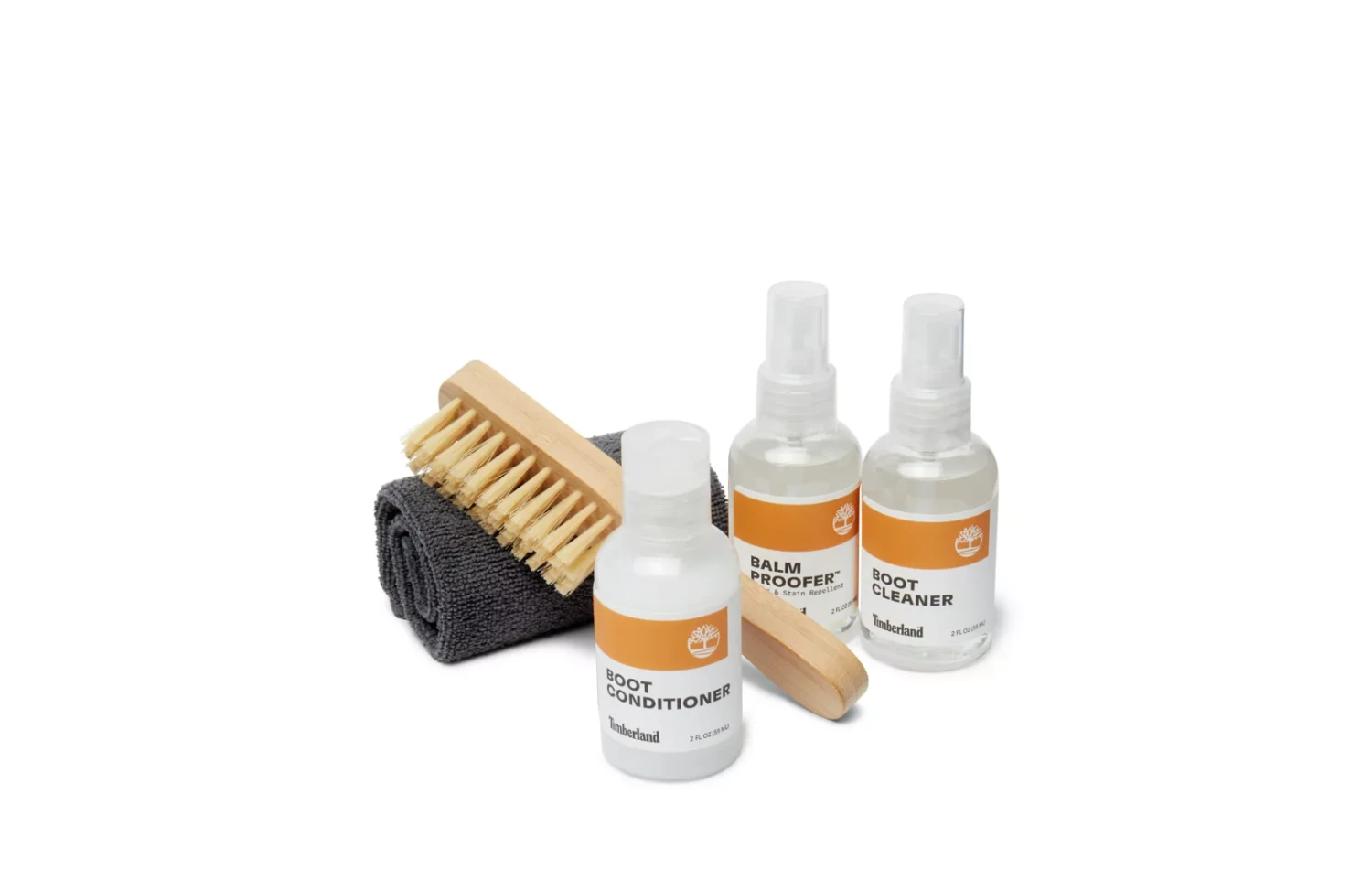 - Contains a handled brush, towel, and 3 key products to care for your boots: Boot Cleaner, Boot Conditioner, and Balm Prooferâ„¢ Water & Stain Repellent