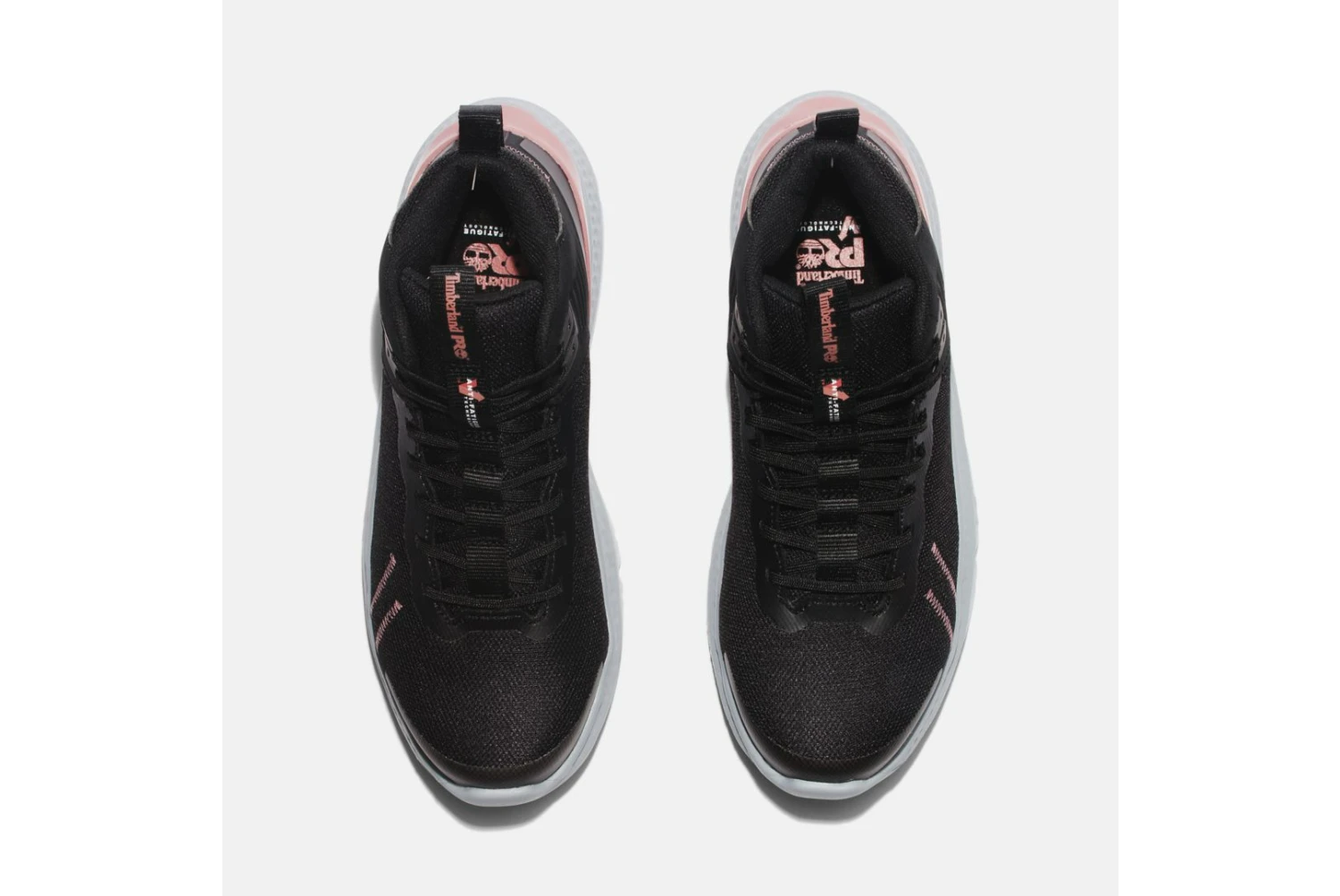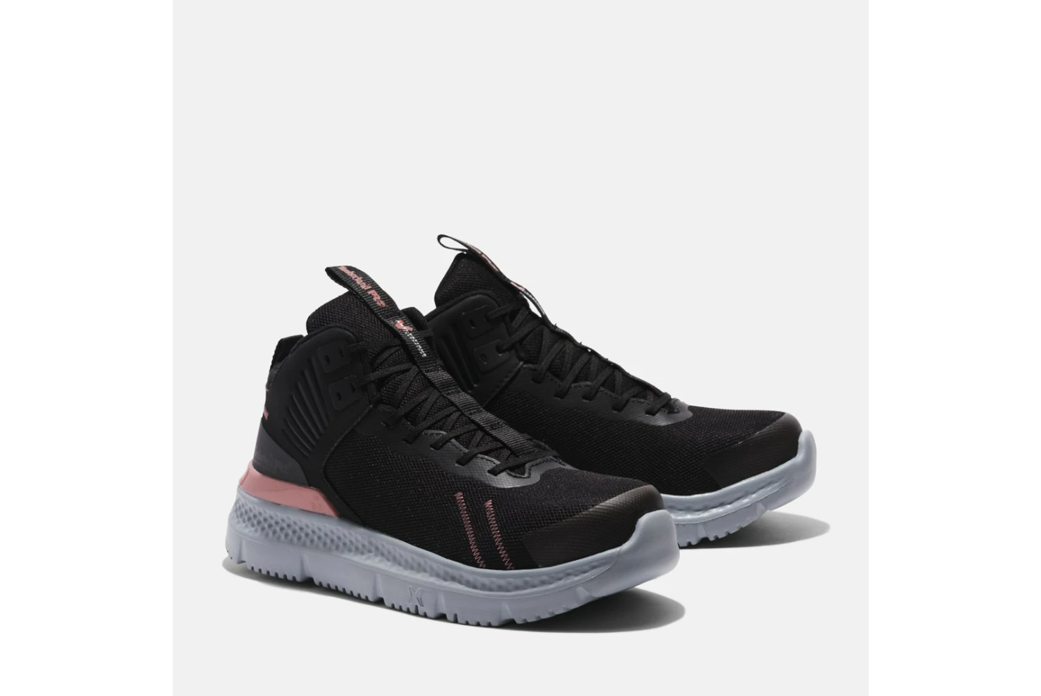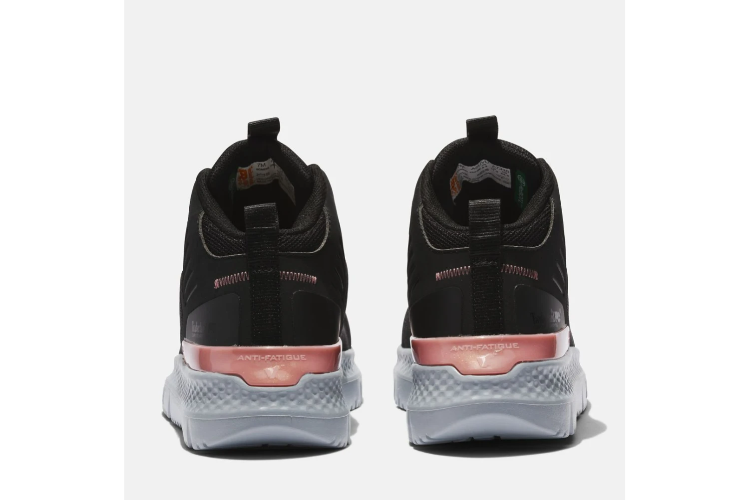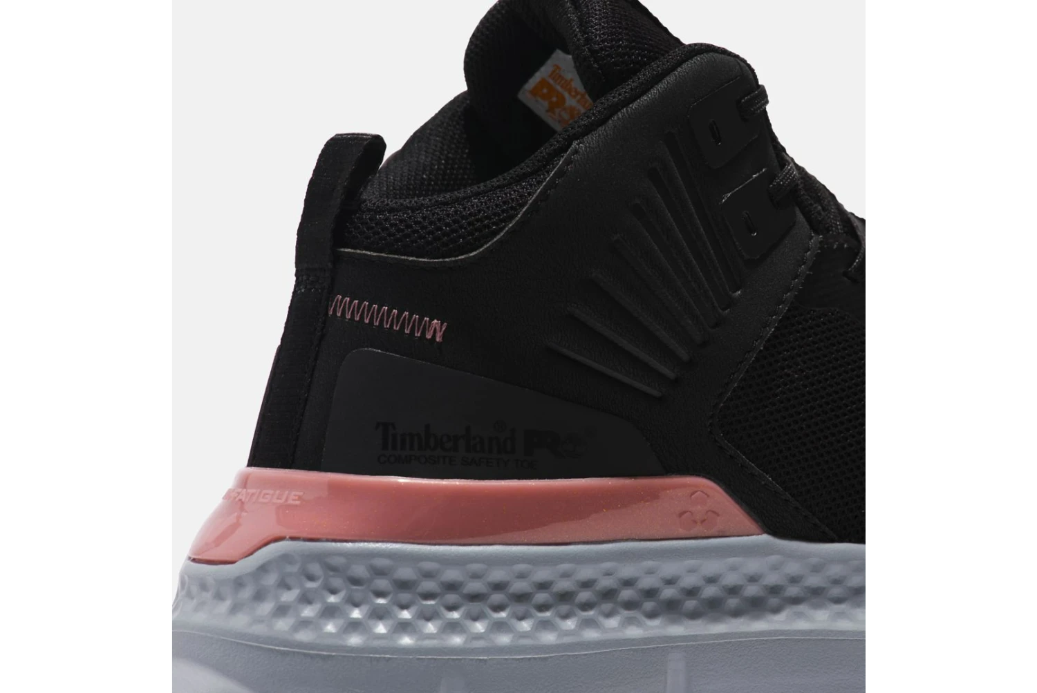 Built on a women’s specific last, our latest athletic work boots are so lightweight and comfortable you might forget they offer safety and durability features as well. Utilizing Timberland PRO® FLEX technology, durable stretch fabrics are incorporated with thick, ultra-comfortable, injection-molded EVA outsoles that have anatomically positioned flex grooves so you get full range of motion without resistance. The Setra’s metal- and mutilation-free uppers consist of breathable, durable mesh with reinforcements in high-abrasion areas. We added composite safety toes, electrical hazard protection, TPU heel clips to enhance stability, and our Anti-Fatigue Technology footbeds that provide shock absorption and energy return for long periods on your feet. Remaining true to our eco-conscious commitments, their breathable, moisture-wicking linings are made of ReBOTLâ„¢ fabric containing at least 50% recycled plastic to help keep plastic bottles out of landfills.