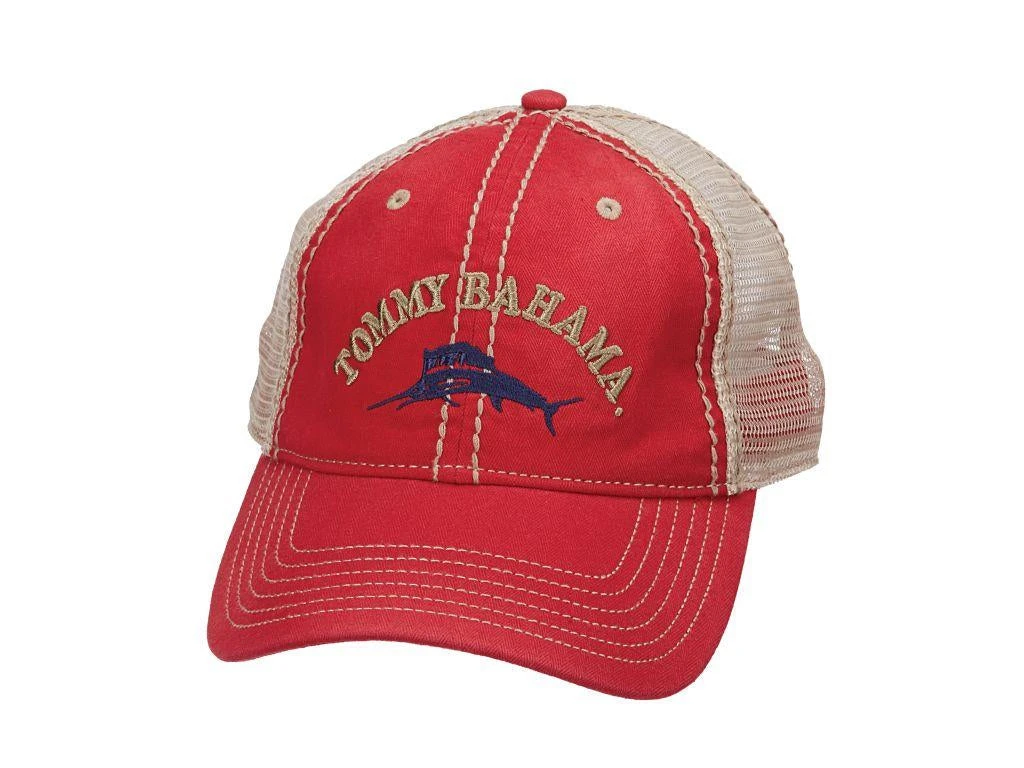 Sport the Tommy Bahama Baseball Cap on a sunny day out with friends. Crafted from a blend of cotton and polyester, this casual cap is designed with a mesh back and buckle closure. Unstructured construction Embroidered TB marlin detail Mesh back with buckle closure 43% cotton, 57% polyester.